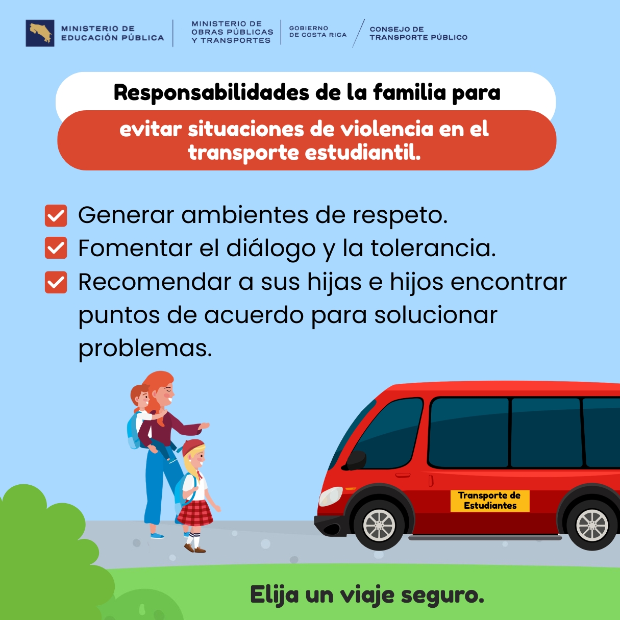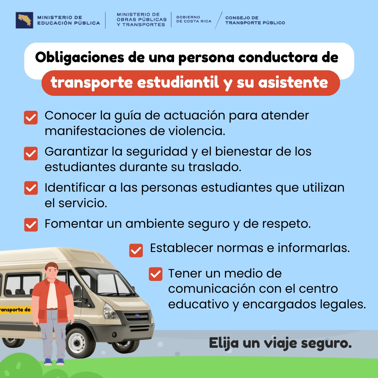 Desde el Consejo de Transporte Público, se exalta la importancia de realizar esta guía para el transporte de estudiantes, subrayando el valor de garantizar un traslado seguro. Este esfuerzo conjunto con el MEP permite un manejo integral de la seguridad de las personas menores de edad, asegurando que el trayecto entre el hogar y el centro educativo sea un entorno protegido y libre de violencia.