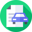Icono con imagen documentos y ojo de auditoría con fondo morado.